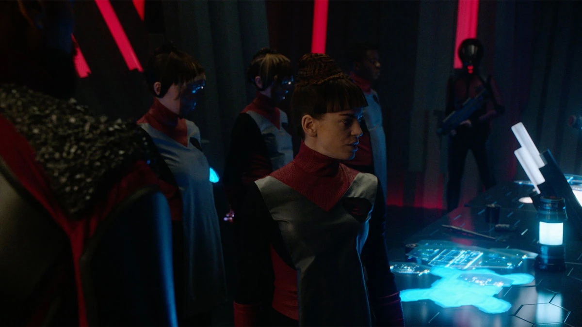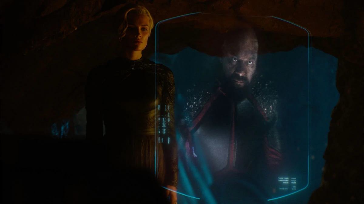 Dru-Zod disarming and overpowering Seg-El as Jax-Ur announces Lyta-Zod as her hostage