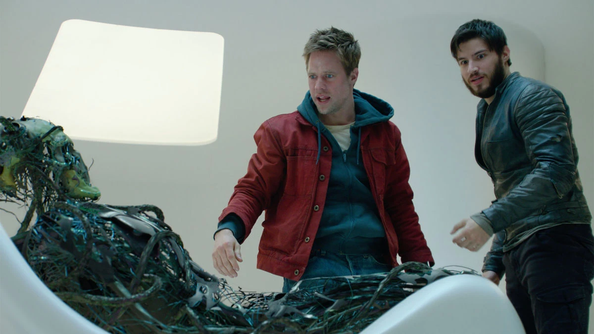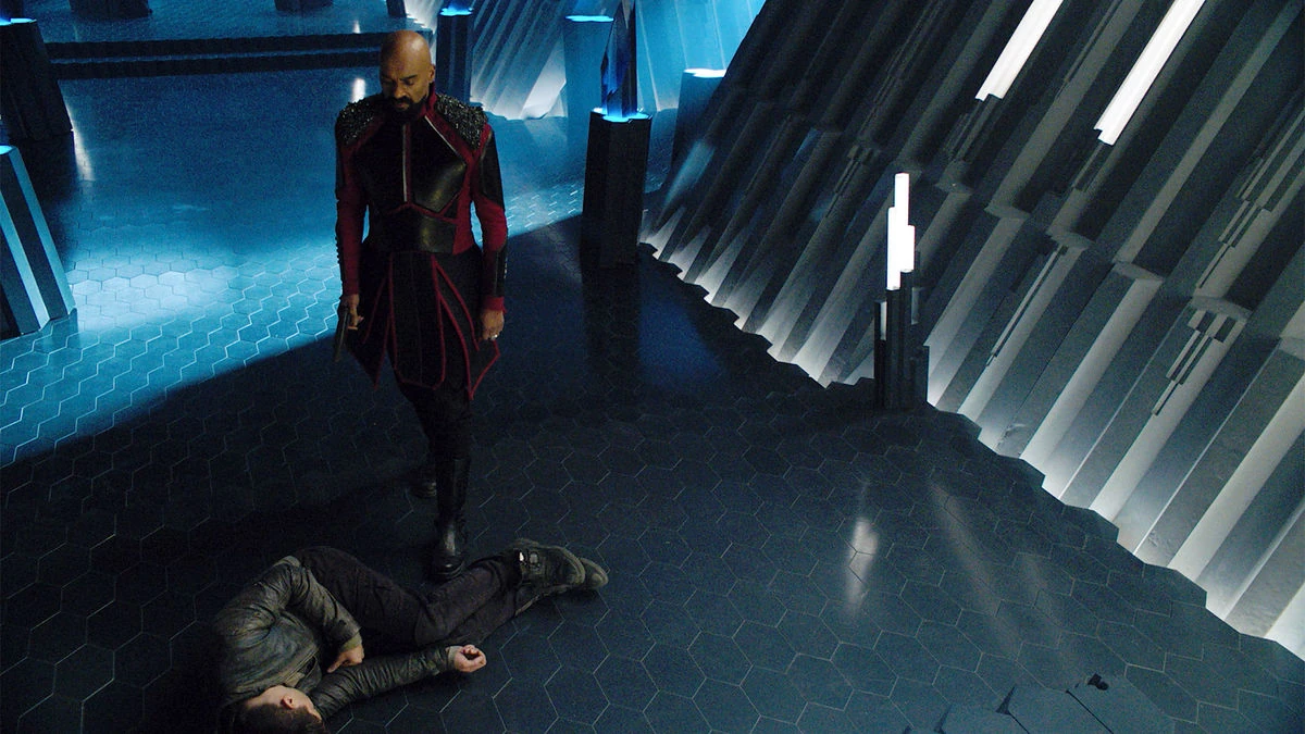 Seg heads to the Genesis Chamber to start the operation with Black Zero. Jayna and Black Zero give Seg and Dru cover to reach the center, but when they arrive the neural connection is still live and the Red Shard is still active. Seg suggests to give more time, but Dru becomes impatient and downs one of the Red Shard. At just that moment, Val-El's hologram succeeds in hacking the network and incapacitates the Red Shard, with the Voice exiting his trance just in time to engage Dru while Seg knocks out a fleeing Daron-Vex. The Voice gets the upper hand, knocking down Seg and choking Dru until Jayna arrives and shoots him, causing him to release Dru and fall into the genesis apparatus.